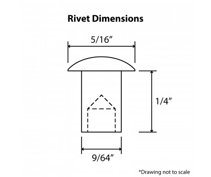 This steel rivet can be easily installed using simple hand tools or an automatic machine and will draw the pieces being fastened together during installation without having to clamp the assembly prior to riveting. Size of rivet is shown in the diagram and will fit all of our clipboard clips and other materials with a maximum thickness of 2.1 mm or 0.0826 inches.